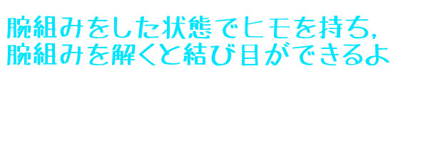 どちらの手もはなさずに結び目を作るにはどうすればよいかな?